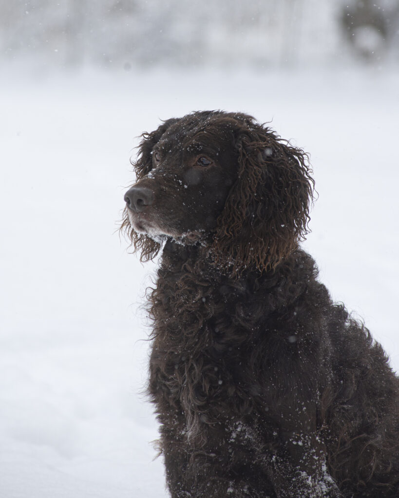 Finn Försvinn, Finn fem fel eller Finn ett rätt – kärt barn har många namn! Han är flockens mest uppfinningsrika och nyfikna filur, och han har gett mig många grå hår under livet. Jag vet inte hur många gånger jag säger ”Nej, Finn”, ”Inte den, Finn”, ”Låt bli, Finn”… Han är helt enkelt en hund med mycket charm och humor, stor integritet och en räv bakom varje öra! Han föddes hemma i gästrummet efter en skolboksvalpning, och är för närvarande min enda klövviltshund.
